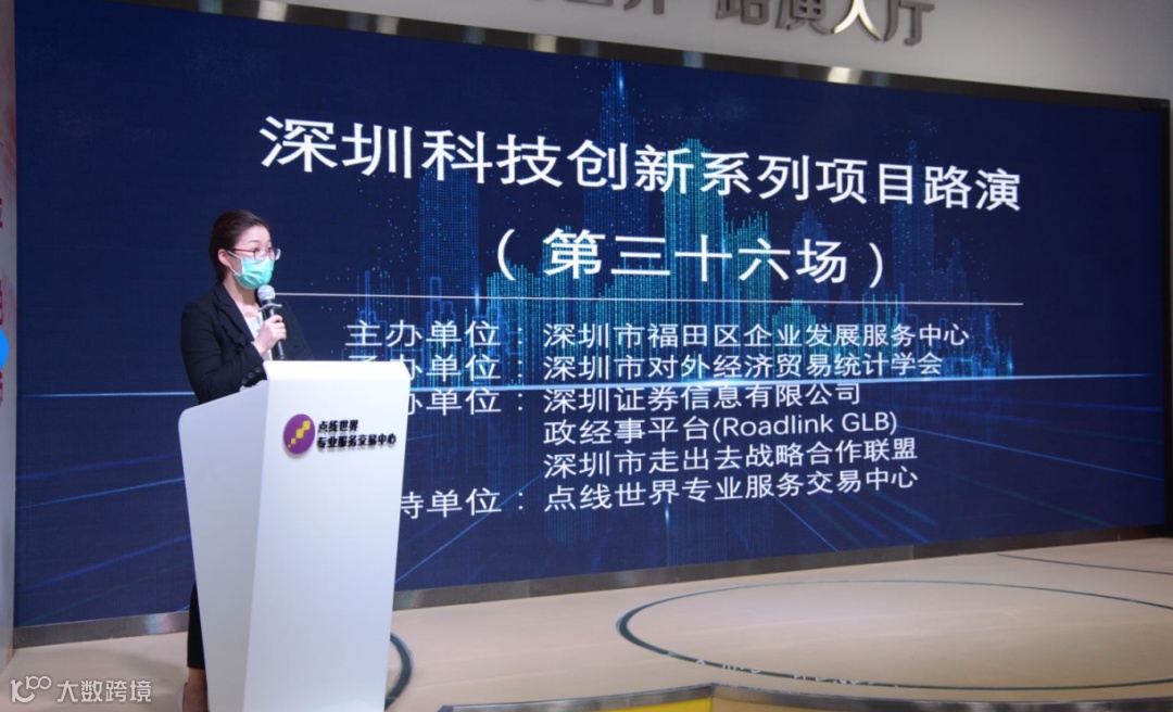 4月29日下午,由深圳市福田区企业发展服务中心主办,深圳市对外经济贸易统计学会承办,深圳证券信息有限公司、深圳市走出去战略合作联盟与政经事平台(Roadlink GLB)协办的『深圳科技创新系列项目路演第三十六场』在深圳市福田区点线世界专业服务交易中心顺利举办。