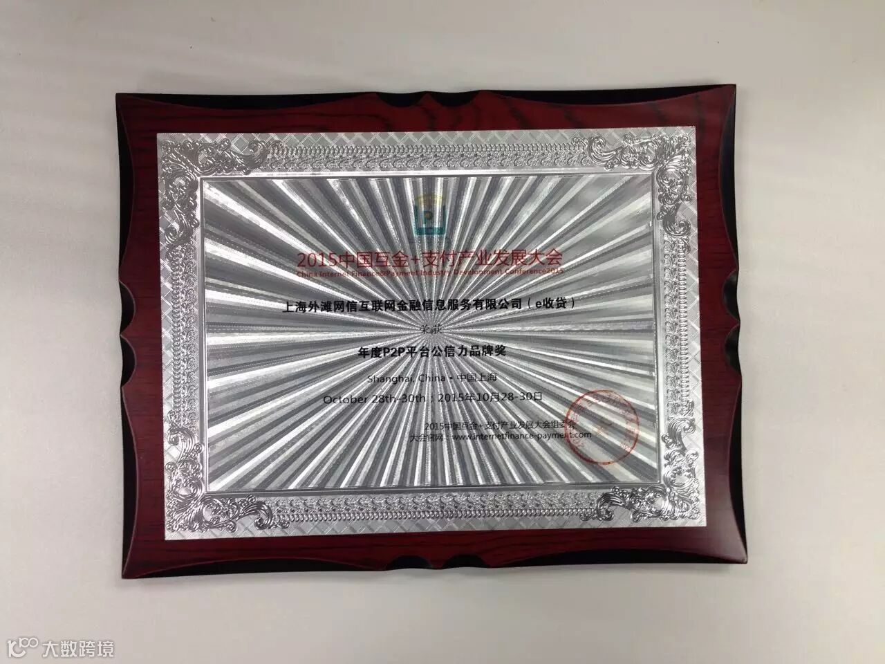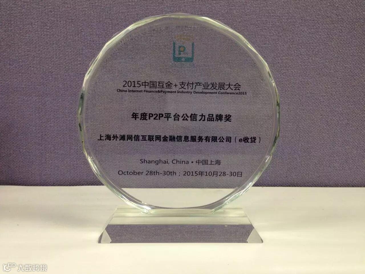 28日下午大会主办方举办了盛大的“互金+支付产业”颁奖典礼,旨在表彰在行业发展中做出卓越贡献的企业。上海外滩网信互联网金融信息服务有限公司荣获大会主办方颁发的“2015年度p2p平台公信力品牌”奖项。