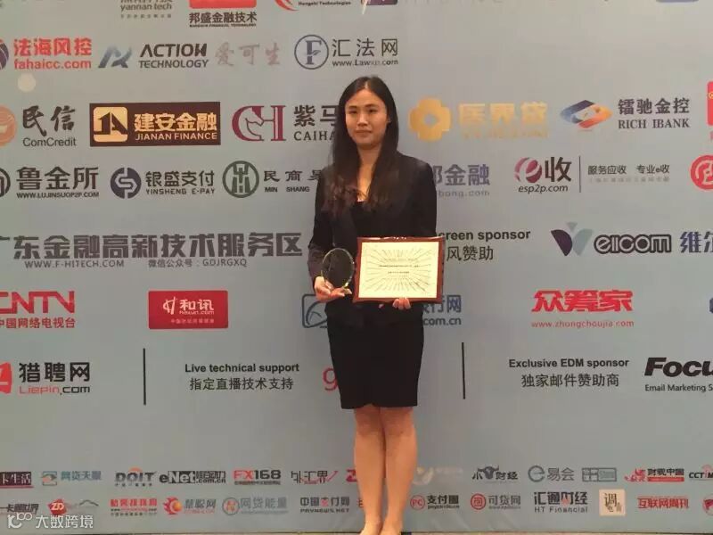 上海外滩网信互联网金融信息服务有限公司营运总监黄渊超女士出席颁奖典礼,并代表上海外滩网信上台领取了奖杯和荣誉证书。