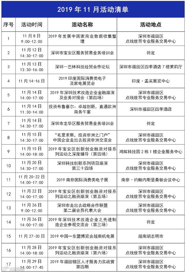 【正经•预告】活动清单表(截止至2019.11.29)