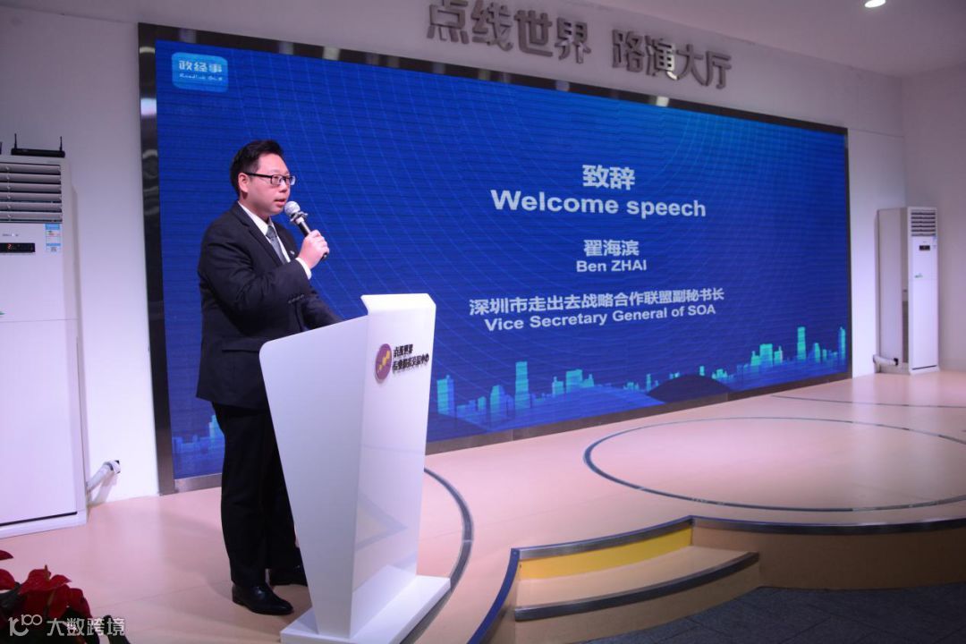 ▲图为深圳市走出去战略合作联盟副秘书长翟海滨致辞