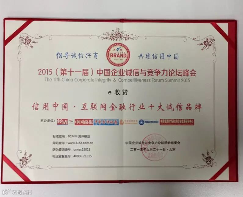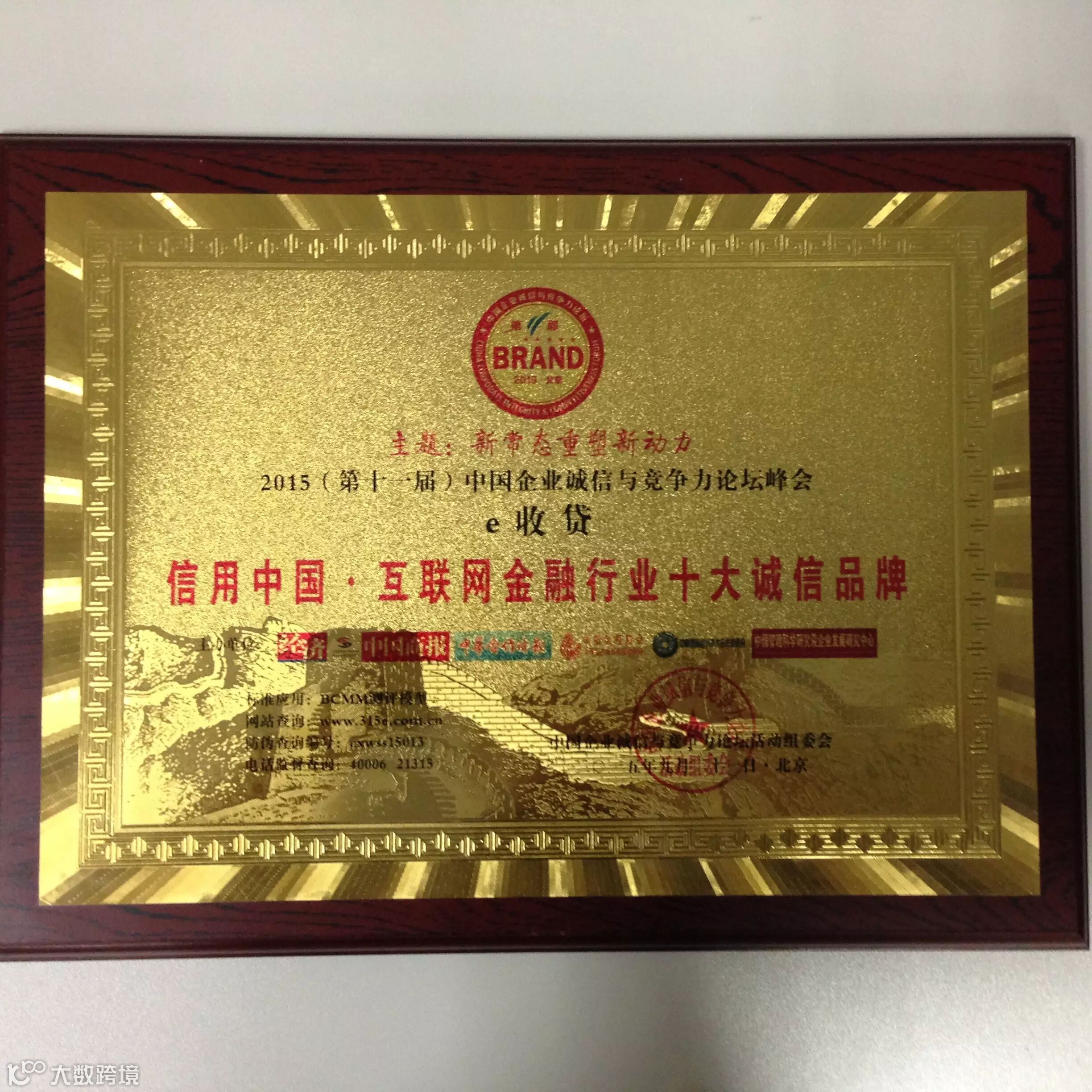 信用中国互联网行业十大诚信品牌---"上海外滩网信e收贷"