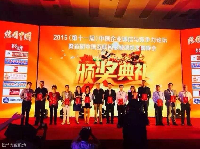 2015年9月21日,上海外滩网信总裁冯雪青女士受邀参加了2015(第十一届)中国企业诚信与竞争力论坛暨首届中国互联网金融创新发展峰会颁奖典礼,并且“梅开二度”分别获得了“信用中国互联网行业十大诚信品牌--上海外滩网信 e收贷”和“推动中国产业经济创新发展年度突出贡献人物---冯雪青”,星耀北京人民大会堂。
