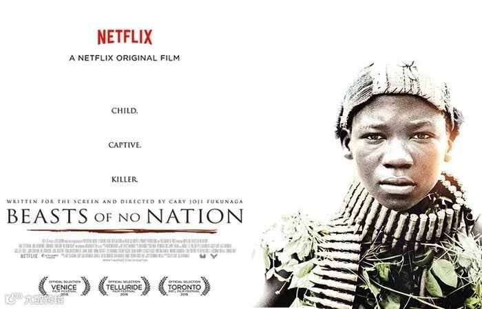 2015年Netflix自主发行了首部故事长片《无境之兽》。这部预算600万美元的电影,从一个非洲国家的儿童士兵的角度描述了战争的恐怖。该片也获得了当年威尼斯、金球奖当多个奖项的提名。