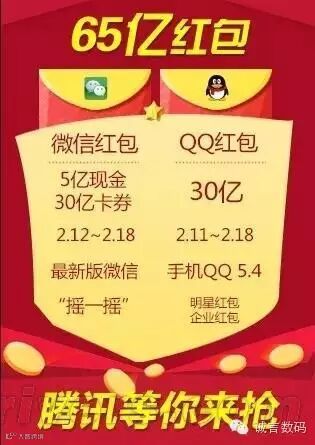 “几乎每个智能手机用户都会用”,这就是微信最大的优势。面对支付宝的强大攻势,微信也不示弱,他们联合商家推出春节“摇红包“活动,将送出金额超过5亿的现金红包(单个最大红包为4999元),以及超过30亿卡券红包。