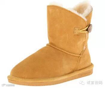 采用结实的反绒牛皮鞋面,类似于UGG经典Bally款一样的一粒牛角扣,可翻折两穿,虽然不是像UGG那样皮毛一体,不过质量上佳的羊皮内衬植羊毛。