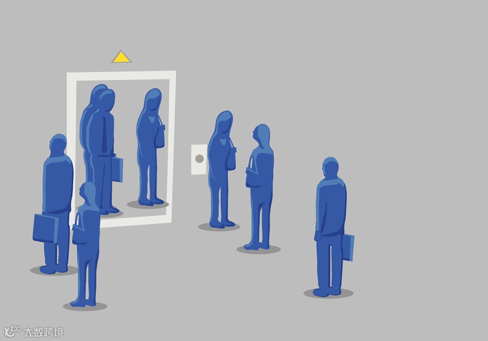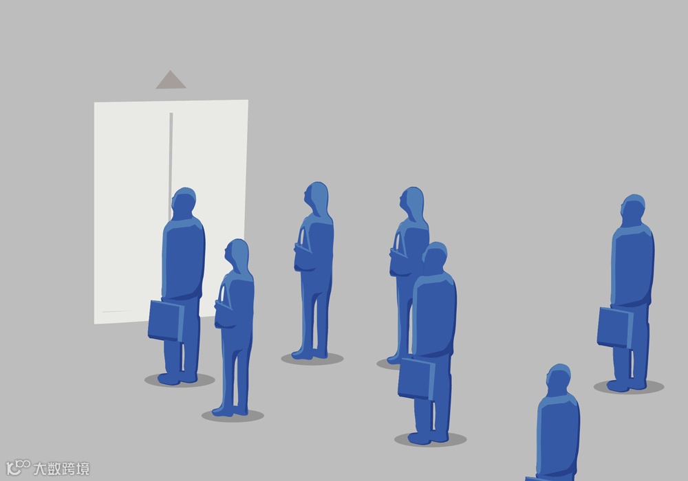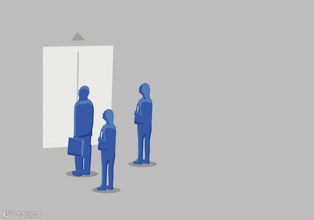 正在等待下一班电梯的人,记得等电梯门完全关上再按电梯按钮。