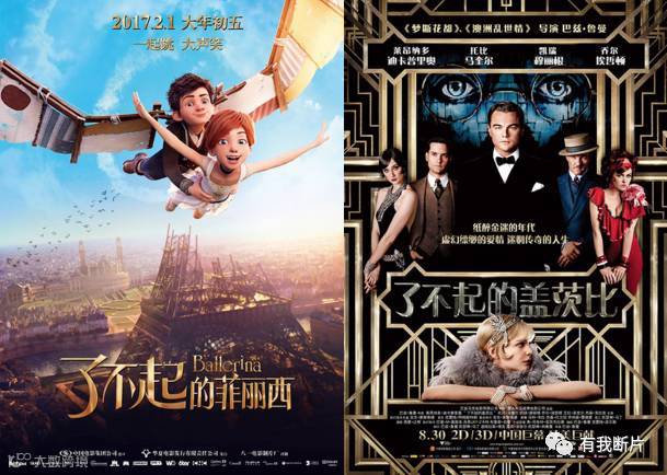《了不起的菲丽西》、《了不起的盖茨比》,虽然后者有被吃瓜群众宠爱的小李子主演,但这种形容词加外语人名儿的翻译,就相当于我们跟外国人说“了不起的宋小宝”是一个效果,很多时候偷懒加工的直译并不能表达出影片的精髓,也起不到画龙点睛的作用,反而平淡无奇,无法激发路人观众的观影欲望。