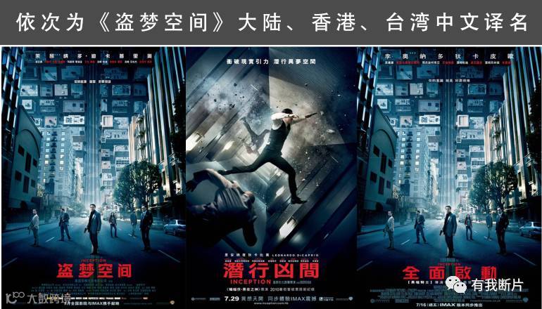 早期还有《乱世佳人》(Gone with wind)、《人鬼情未了》(Ghost)、《魂断蓝桥》(WaterlooBridge)、《盗梦空间》(Inception)等,都是一批超越原本电影名称的翻译,变得更加有意境,更加富有想象空间。
