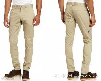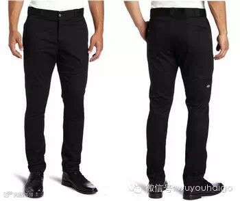 Dickies Men's Skinny Straight Fit Work Pant男士直筒工装裤,属于WP801系列,是一款修身版的工装裤,含81%的棉,18%的聚酯纤维和1%的弹性纤维,两个斜侧口袋,两个贴边口袋和裤腿上一个贴边口袋。
