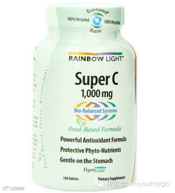 Rainbow Light Super C润泊莱全天然超级维生素C,每粒含量高达1000mg,效力十足,为普通产品含量的10倍以上,一般国产VC含量仅50-100mg之间。纯食物提取,100%天然成分,基于生物平衡系统,更易吸收; 特别添加了钙质,能促进VC的吸收,含葡萄、蔓越莓、甘兰等多种植物提取物,发挥更强效抗氧化功效,促进组织修复、消除自由基。每日1片,随餐或两餐间服用。