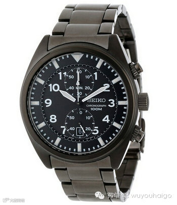 Seiko Men's SNN233 精工男士时尚石英腕表,货号SNN233,采用日产石英机芯,离子镀黑处理不锈钢表壳和表带,搭配白色夜光指针和刻度,直径42.6mm,