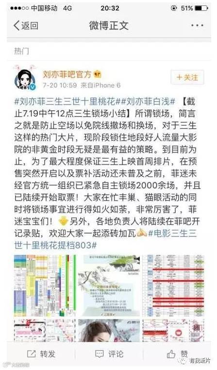 两位主演脑子进水的粉丝们还傻乎乎锁了7万多场4S的票,以为这样能促进4S的排片和和上座率,这种你不让我家爱豆的电影赚钱我也不让别的电影赚钱自以为是的极端行为,火上浇油适得其反,不仅没能帮到他们的爱豆以及爱豆的电影,还加剧了影院和4S恶意锁场粉丝之间的矛盾。