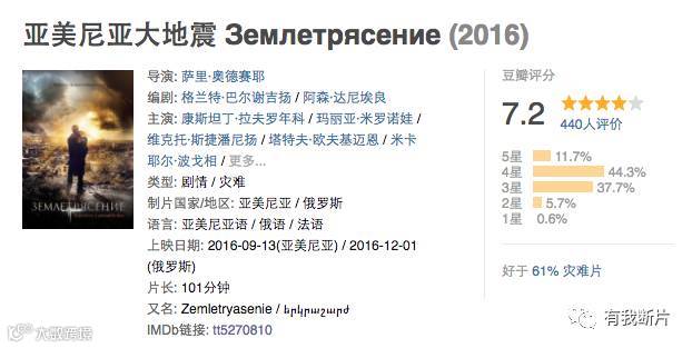 最后推荐一部高分冷门俄罗斯灾难片《亚美尼亚大地震》,场面宏大、震撼感人、直击人性。故事描述在1988年苏俄亚美尼亚西北部斯皮塔克发生的6.9级大地震中,人性的挣扎与救赎。两座城市化顷刻为废墟,偏偏命运弄人,人性突显,难道灾难面前善与宽恕真的才是最重要的吗?