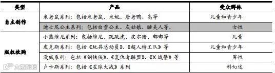 迪士尼的核心竞争力就在于其设计出的经典人物形象,建立起了深受大众喜爱的内容产品线。从成立之初,迪士尼就一直坚持自主设计新颖的动画人物,成功塑造了米老鼠、唐老鸭、白雪公主等家喻户晓的卡通形象,积累了大量的优质 IP 资源。此后,又相继收购了皮克斯动画、漫威和卢卡斯影业,丰富了在内容制作上的创意、扩大 IP 储备。截至 2012 年,迪士尼已有超过四百个拥有版权的动画和电影形象,公司围绕高质量的IP 资源,实现了“影视制作+衍生品开发“的全产业链布局。