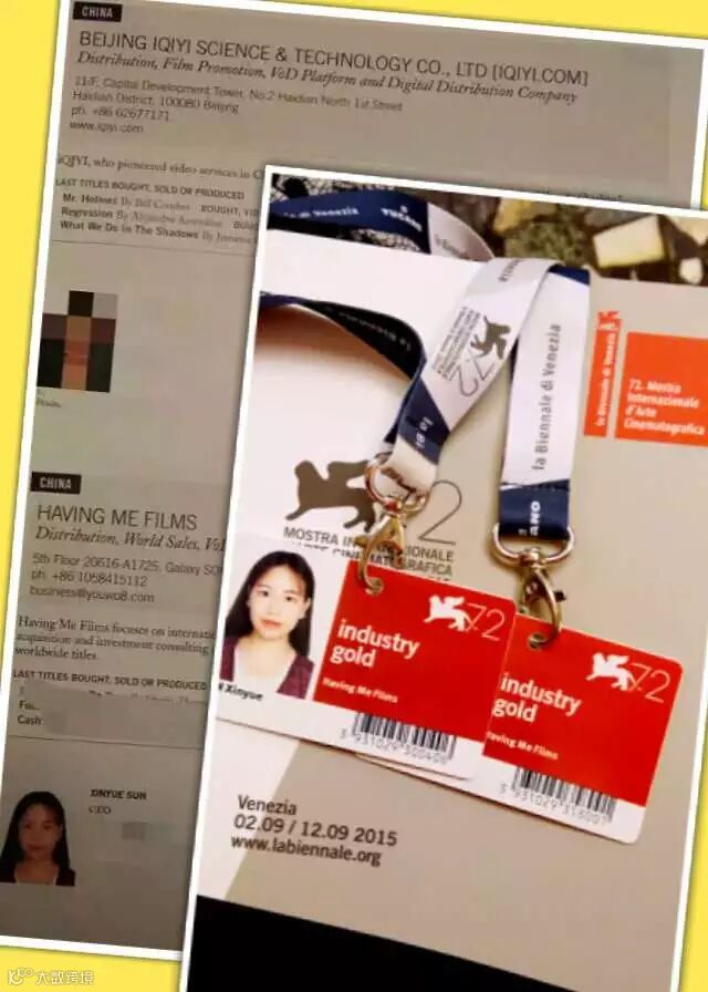 我们公司(HAVING ME FILMS)今年受邀参加第72届威尼斯电影节,并作为仅有的三家中国公司之一(其中含爱奇艺),被录入官方指南手册,作为一家海外发行和预售的公司,我们就是想帮助更多的中国电影,像以上影片那样堂堂正正地走出去。