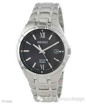 Seiko Men's SNE215 Sporty Dress-Solar Classic Watch精工光动能运动腕表,采用光动能机芯,吸收日常可见光作为能量来源,一次充满后可以使用时间长达180天。不锈钢表壳和表带,表壳直径38mm,3点钟日期显示,强化Hardlex表镜,防水100米。发货重量约1磅。