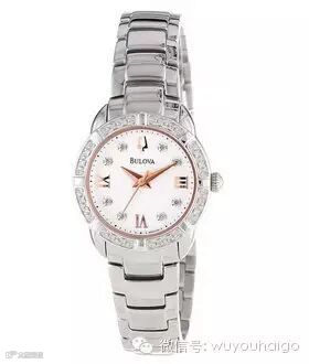这款型号为96R176的宝路华(Bulova)时尚女表,采用白色带纹路表盘,表圈和指针均镀玫瑰金,表圈上镶有24颗闪耀夺目的天然真钻,表盘直径为28mm,厚度仅6mm,非常纤薄,银色不锈钢表带和表壳,矿物水晶表镜,30米生活防水。