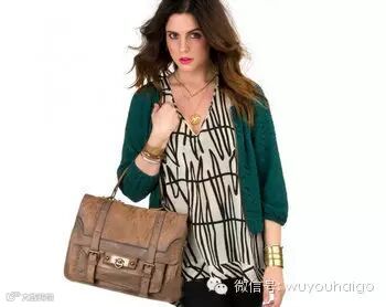 复古锁扣开合,两条带金属头的皮带装饰,颇有邮差包的神韵,锁扣头上刻有logo,蜡变牛皮+古铜色五金+特别的logo厚重的复古味刚刚好。