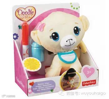 Fisher-Price Doodle Monkey Bear Babies Plush彩绘涂鸦小猴,比之前曾经多次介绍的彩绘涂鸦小熊尺寸小一些,小熊尺寸是38*25*12.5厘米,小猴尺寸是12.5*12.5*20厘米,所以价格也便宜了不少,另外还有前几天推荐过的彩绘涂鸦小兔和彩绘涂鸦小熊宝宝。
