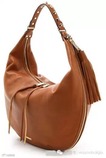 Rebecca Minkoff Bailey Hobo Handbag瑞贝卡明可夫女士可扩展真皮单肩包,全真皮面料,新月造型,肩带上带铆钉装饰,