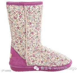 雪地靴卖的比凉鞋还便宜,反季囤着玩吧。BEARPAW Women's Ivy Boot女士碎花雪地靴,采用的织物与牛皮缝制鞋面,鞋面以织物为主,印有小碎花图案,后跟采用反绒牛皮缝合,比常见纯色的雪地靴显得更有青春动感。