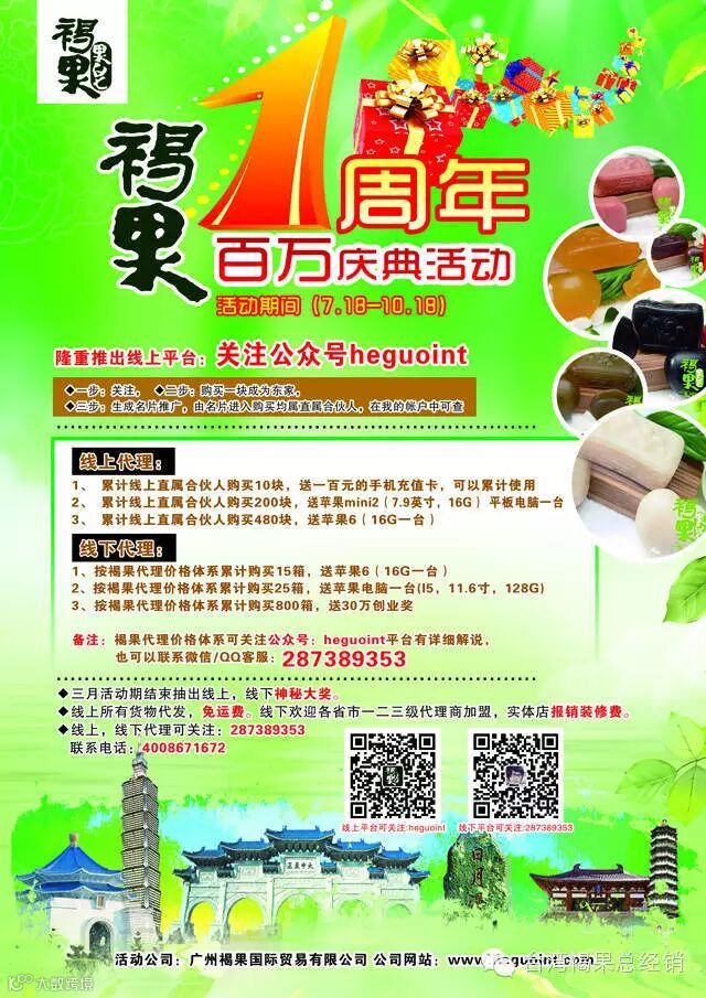 褐果产品自2014年上市以来得到无数顾客的认可和肯定,褐果品牌在竞争激烈的移动互联网中脱颖而出。褐果一周年之际,感谢一路相伴的新老代理,特此隆重推出一、线上平台;二、百万大奖;三、神秘大奖,让我们一起期待!