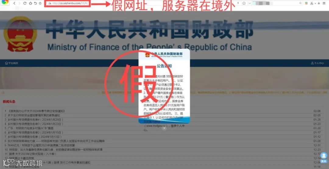 (仿冒财政部相关网站,发布虚假“退税补贴项目”)