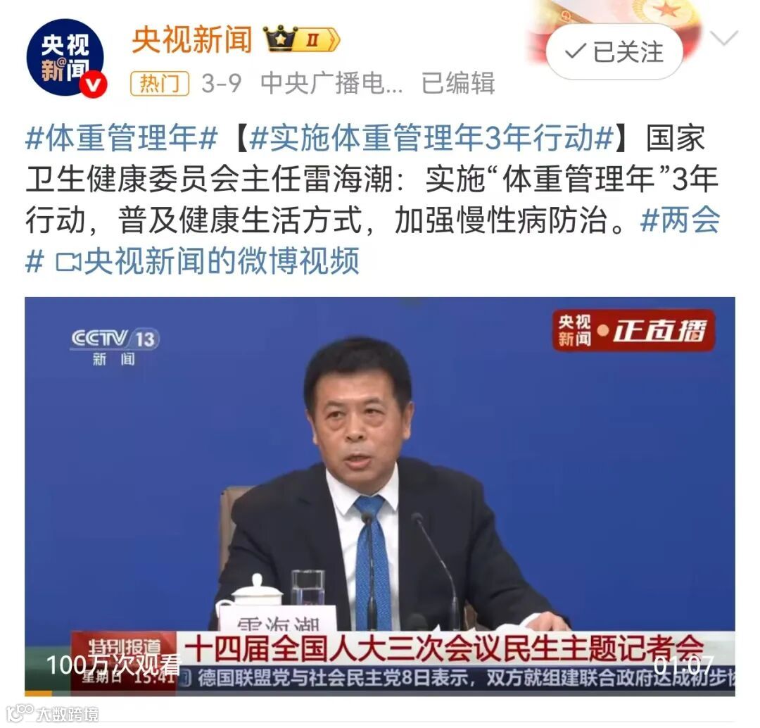 不久前的两会上,国家卫健委主任雷海潮一句话开启了全国“体重管理年”三年行动,减肥一下成了国家大事了。