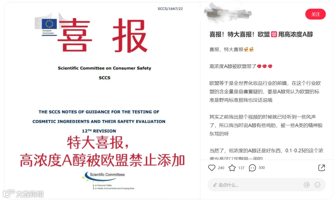 首先,欧盟的上限是为了避免食物+化妆品整体维A类成分摄入超标(毕竟滥用维A类是可能会中毒的),而不是有些博主说的比如烂脸、刺激等原因。