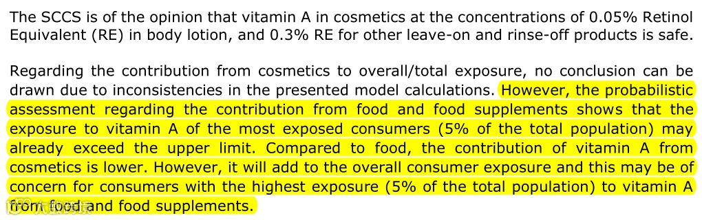 然后,SCCS基于这些数据计算出为了避免超维A摄入的上限,面部不要超过0.3%,身体乳不要超过0.05%。