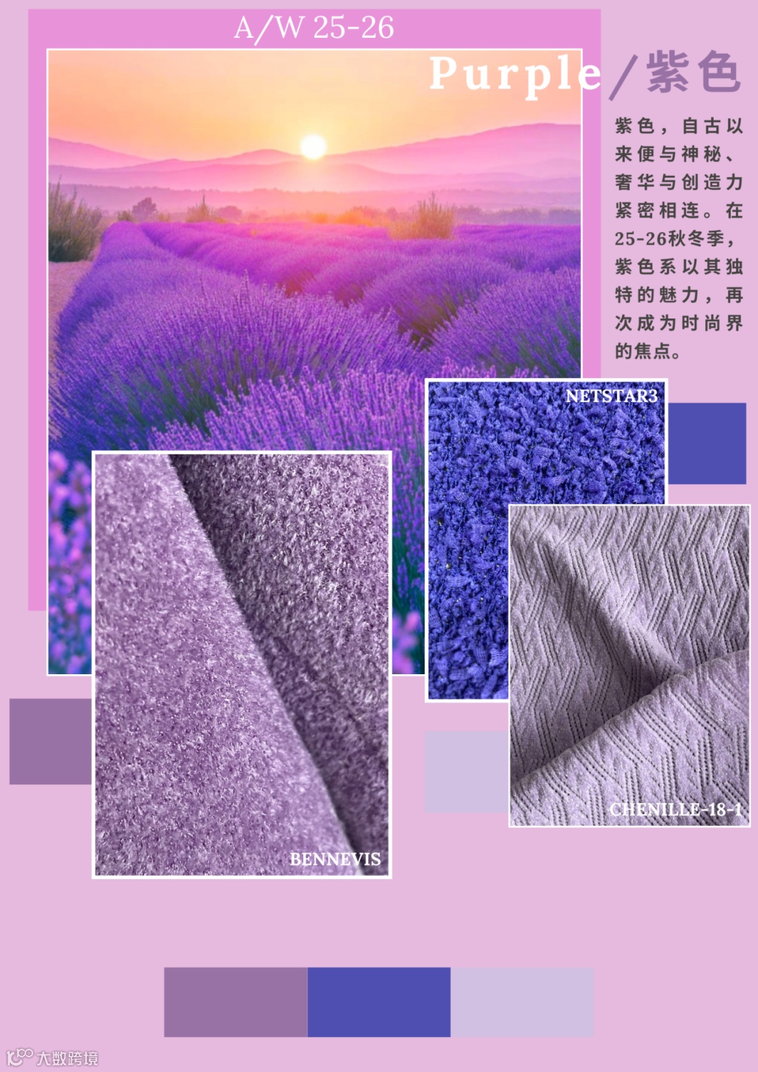 紫色系在25-26秋冬流行色趋势中,展现前所未有的深度与广度,以其独特的神秘之美,为这个季节的服装和配饰注入新的魅力。