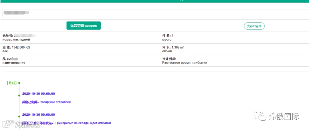 锦俄国际为了提高公司的服务质量和客户体验自12月1号日起启用专业定制的物流跟踪系统1,请扫码关注“锦俄国际”微信公众号2,请点击中间菜单运单查询的"运单跟踪"选项