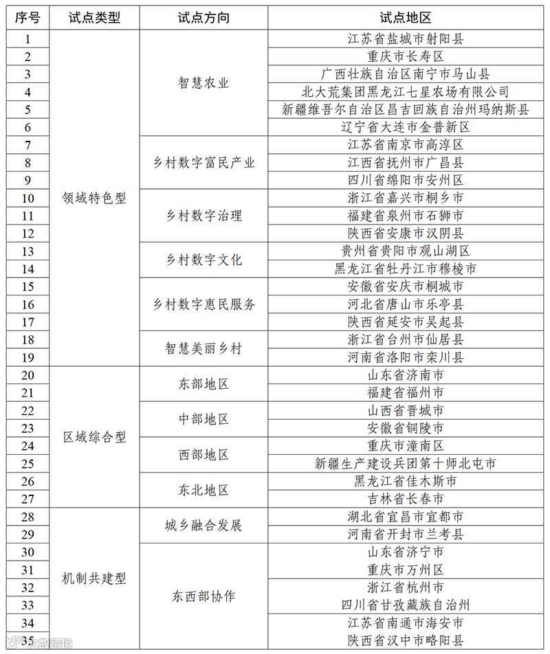 近日,中央网信办、农业农村部、国家发展改革委、工业和信息化部、民政部、生态环境部、商务部、文化和旅游部、中国人民银行、市场监管总局、国家数据局联合印发通知,公布第二批国家数字乡村试点地区名单(附后),并对组织开展试点工作提出具体要求。
