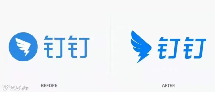 图为新旧LOGO对比。新LOGO保留原有的翅膀轮廓,但将视觉中心从“闪电”转移到“羽毛”,凸显数字化时代下对于企业的价值。新LOGO还去除了圆形外框,生动化还原了羽毛圆润度及上扬角度,呼应了钉钉提倡开放的主张。