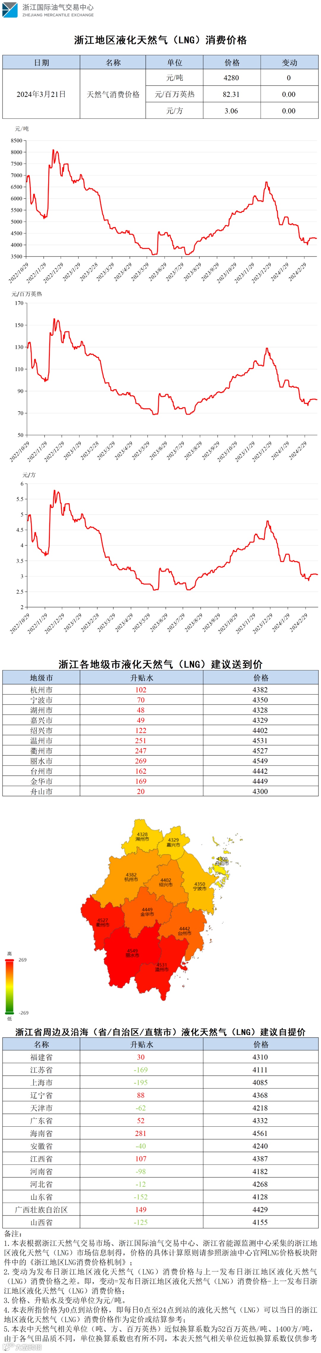 【价格指数】浙江地区液化天然气(LNG)消费价格(20240321)