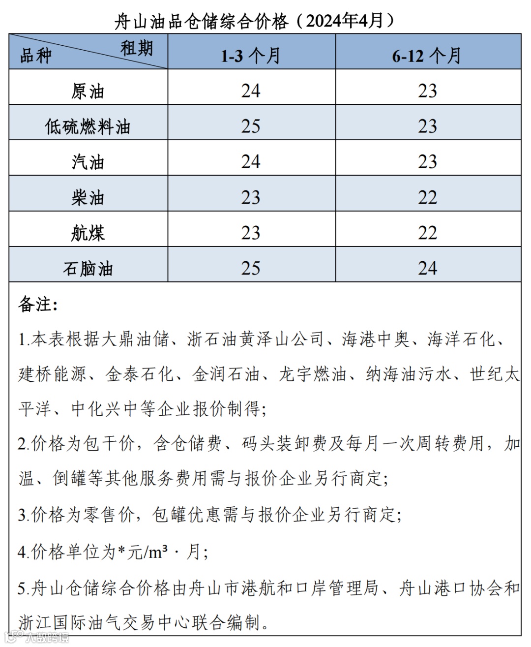 油品仓储综合价格指数