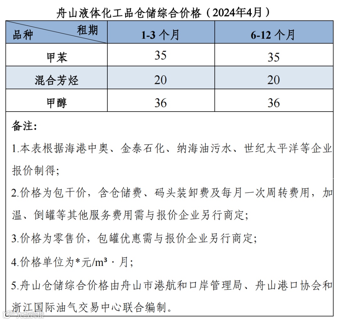 舟山仓储综合价格(2024年4月)