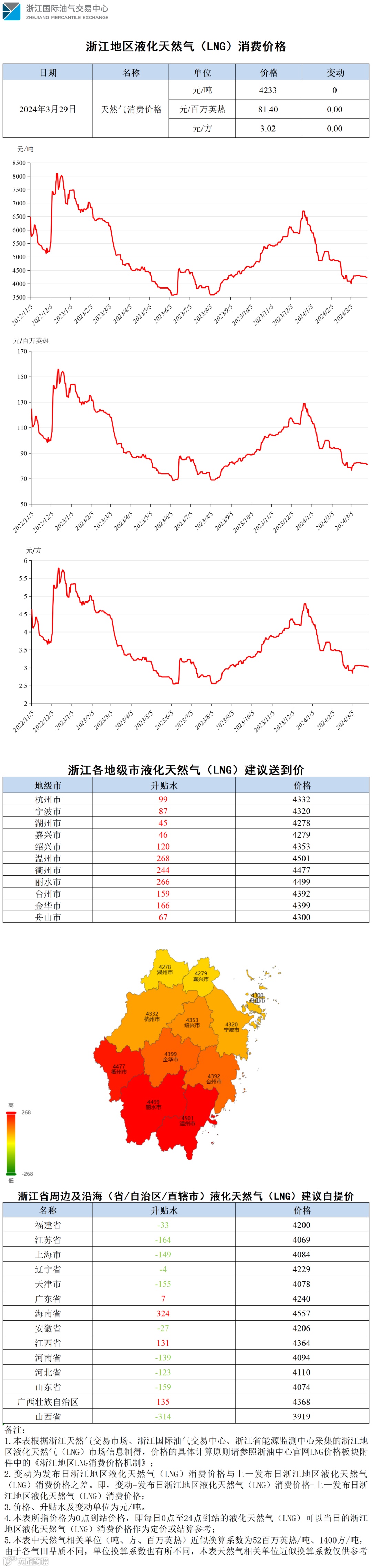 【价格指数】浙江地区液化天然气(LNG)消费价格(20240329)