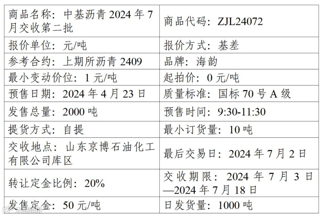关于中基宁波集团股份有限公司预售2024年7月交收第二批沥青产品的公告(2024年第23号)