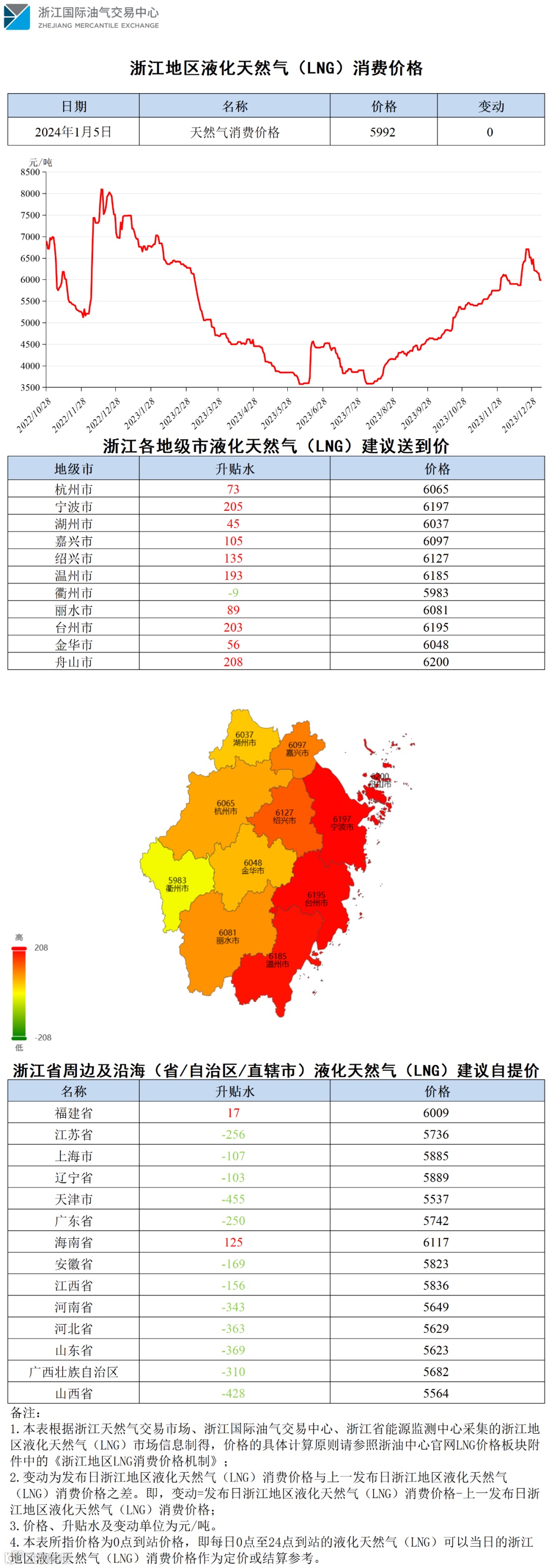 【价格指数】浙江地区液化天然气(LNG)消费价格(20240105)