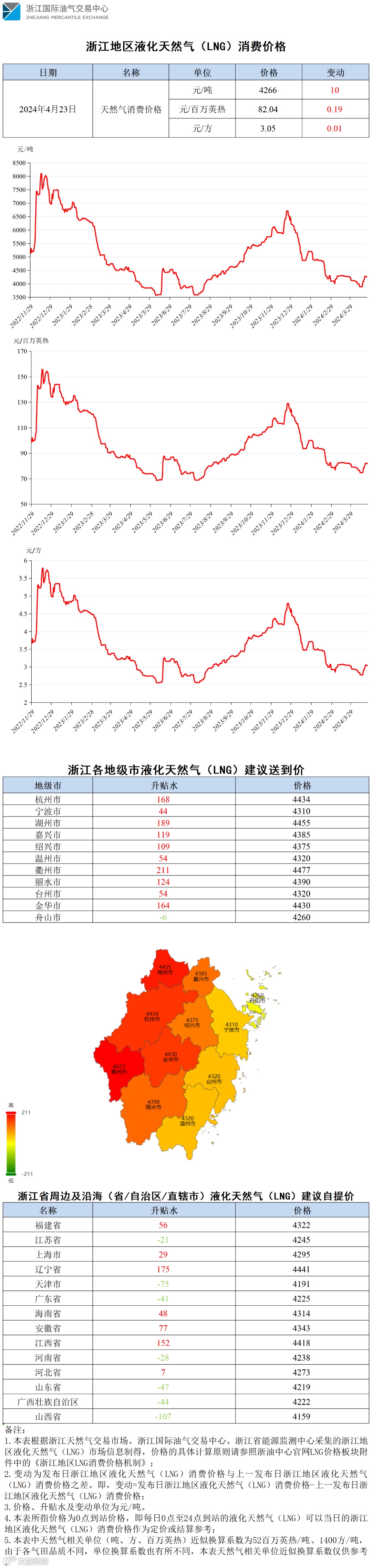 【价格指数】浙江地区液化天然气(LNG)消费价格(20240423)
