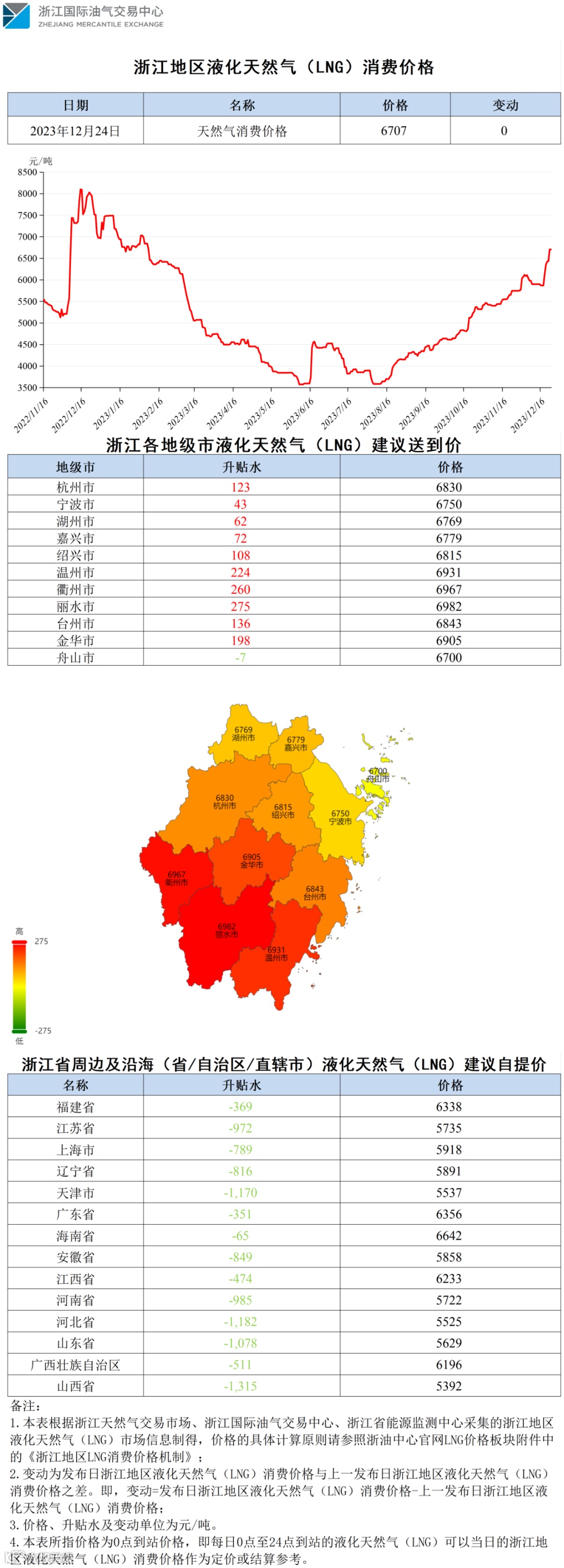 【价格指数】浙江地区液化天然气(LNG)消费价格(20231224)