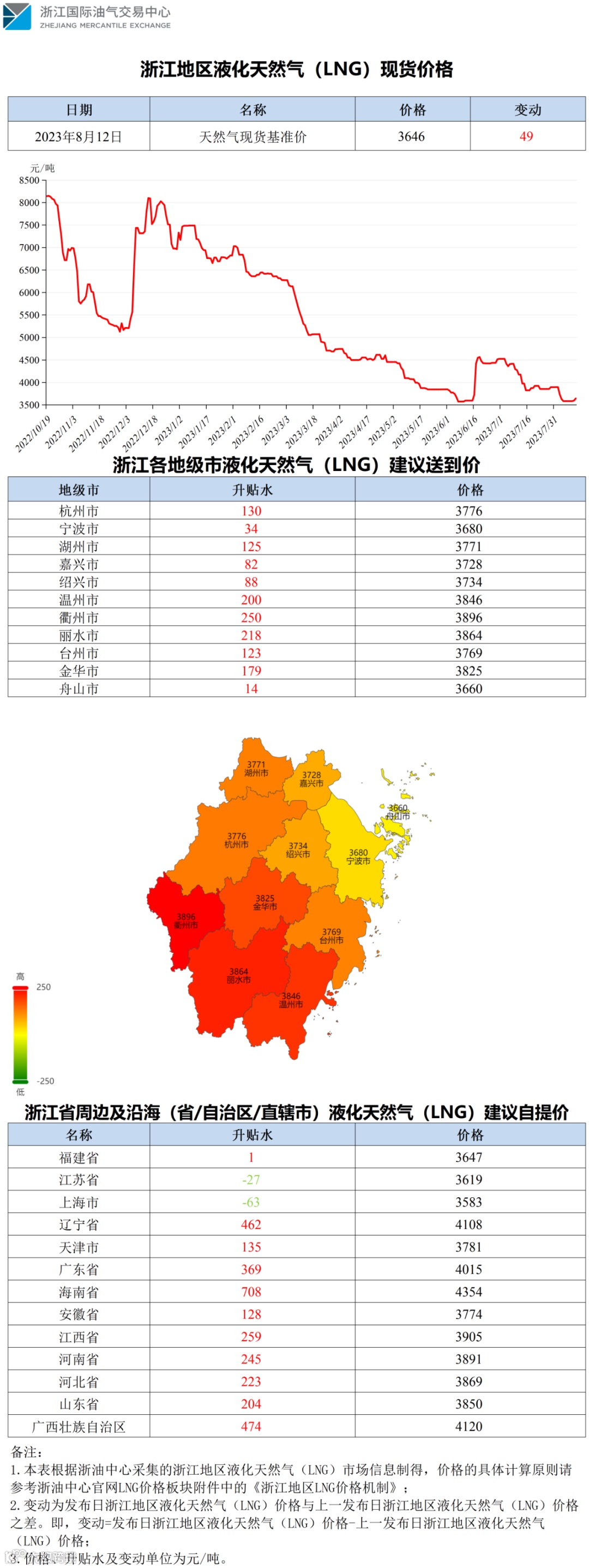 【价格指数】浙江地区液化天然气(LNG)价格(20230812)