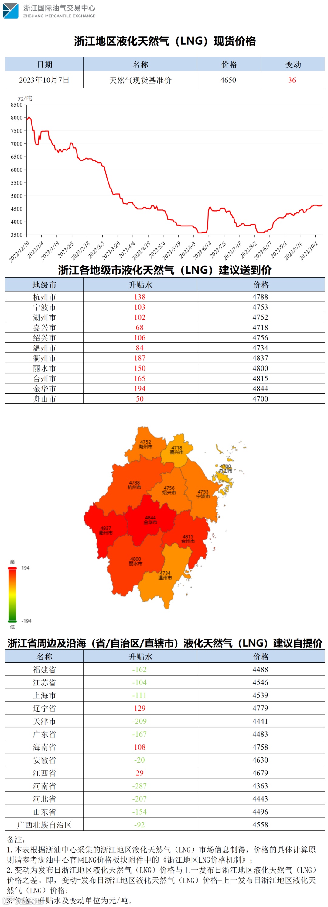 【价格指数】浙江地区液化天然气(LNG)价格(20231007)