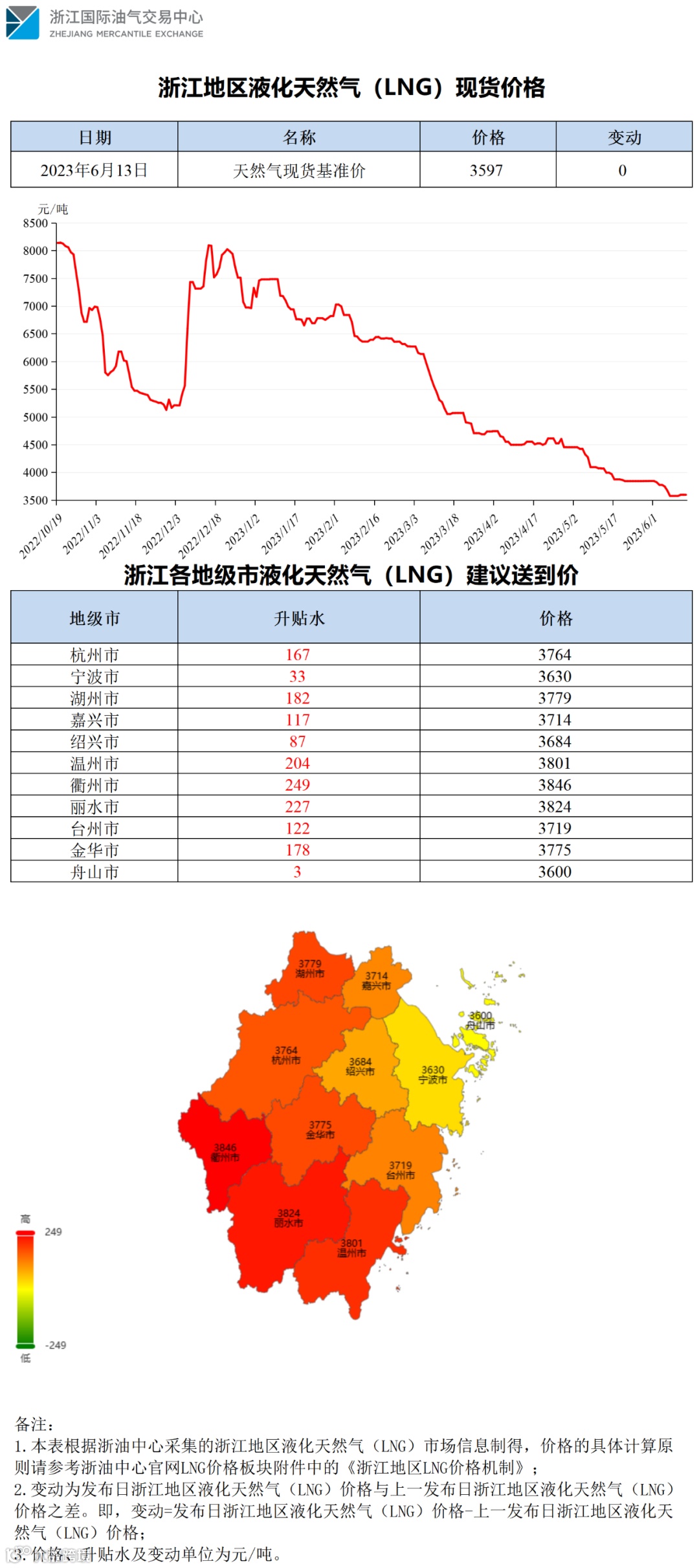 【价格指数】浙江地区液化天然气(LNG)价格(20230613)