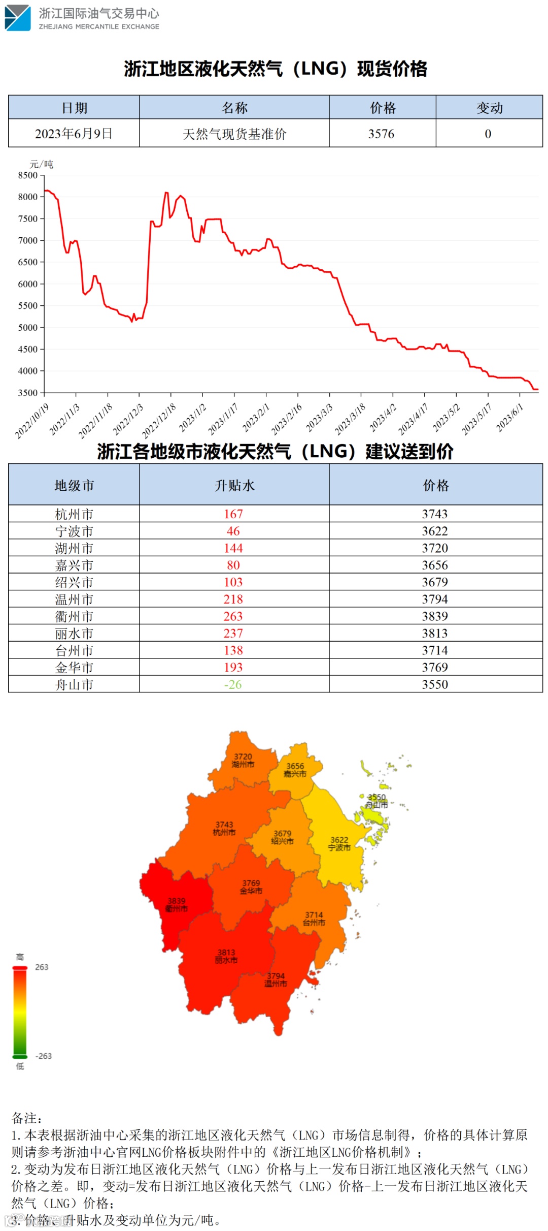 【价格指数】浙江地区液化天然气(LNG)价格(20230609)