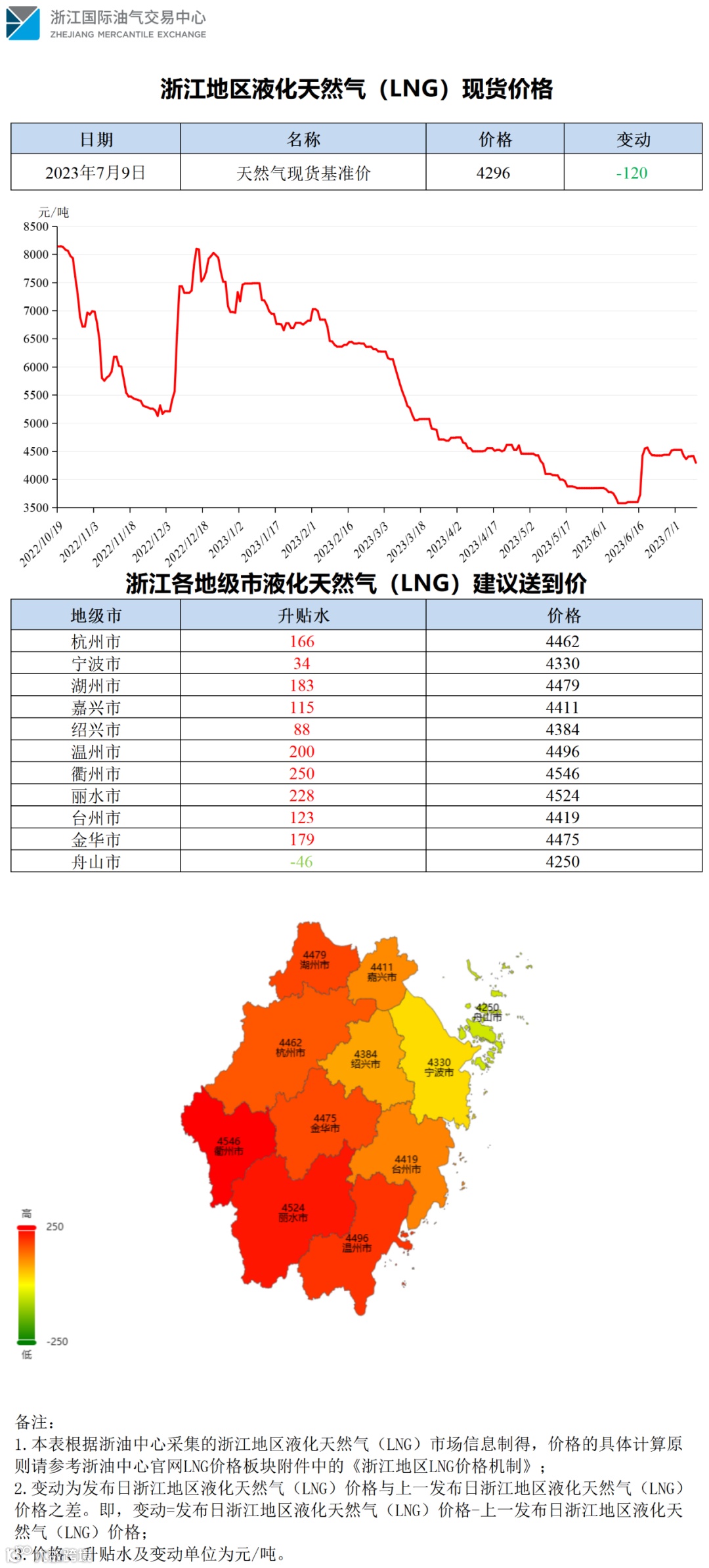【价格指数】浙江地区液化天然气(LNG)价格(20230709)