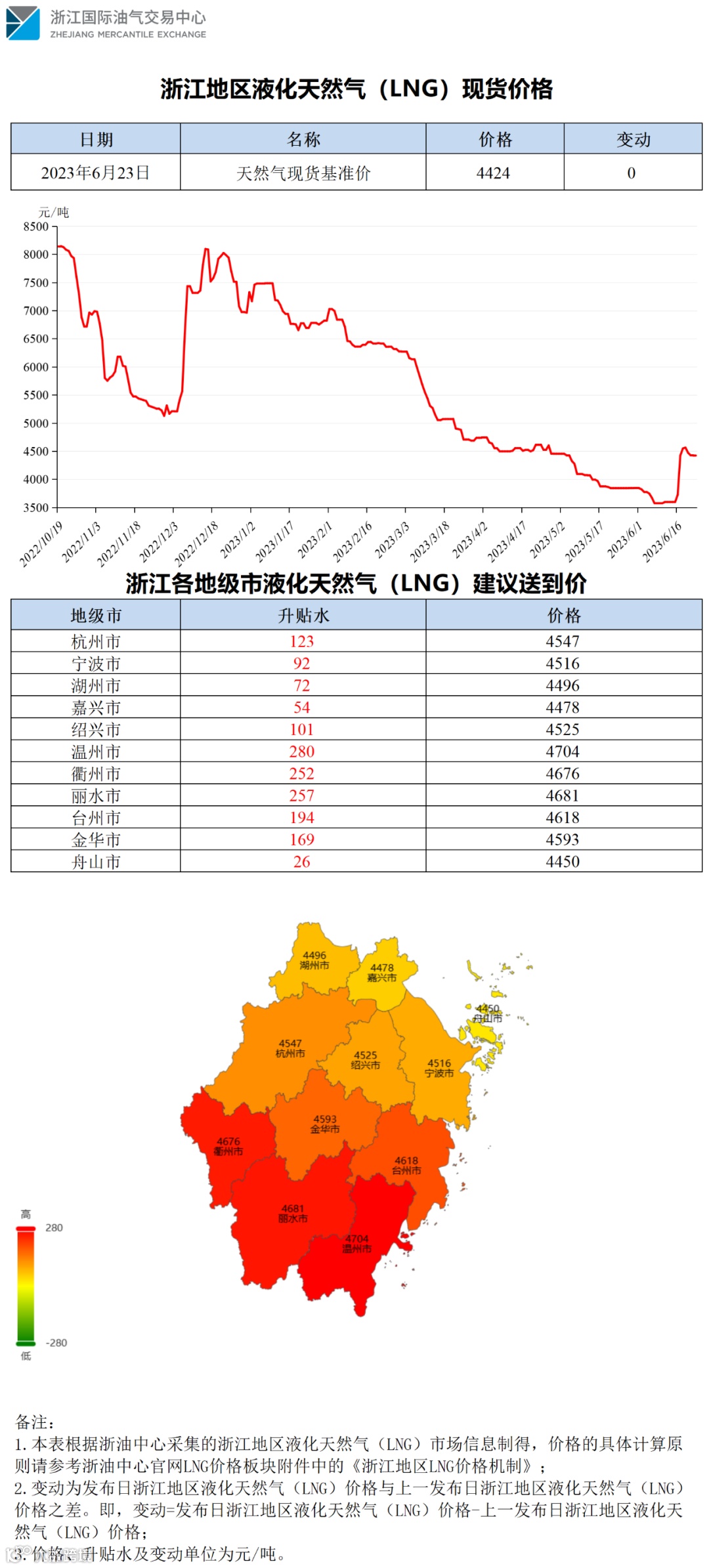 【价格指数】浙江地区液化天然气(LNG)价格(20230623)