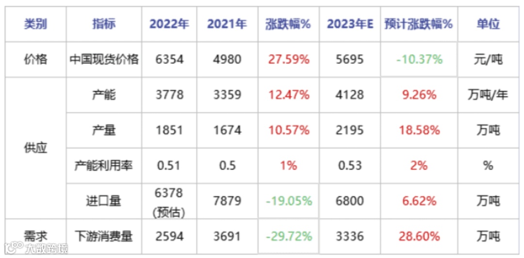 需求方面,2023年下游消费量将上升至3336万吨,同比上涨28.60%。